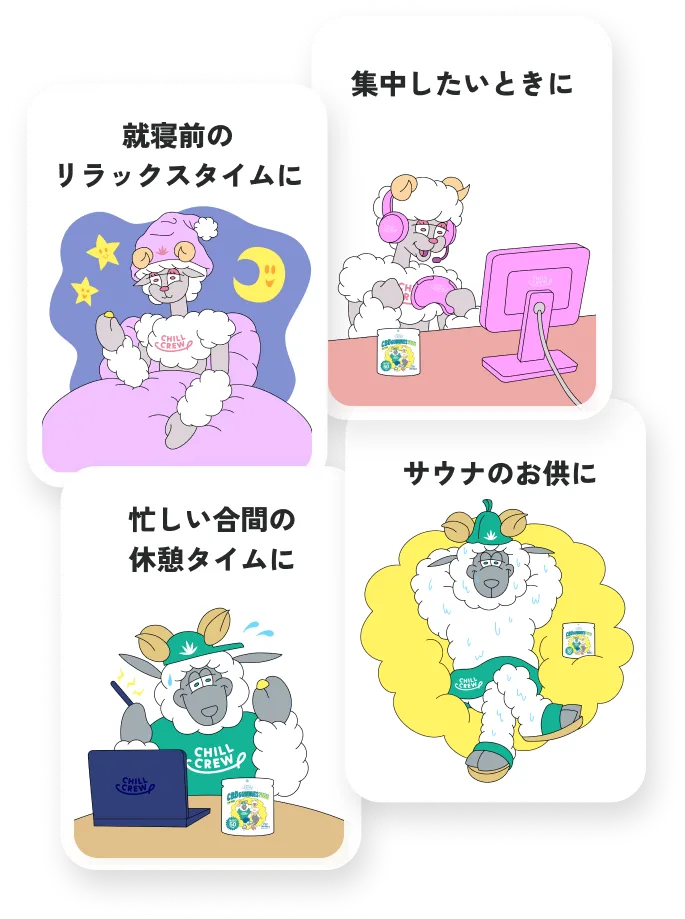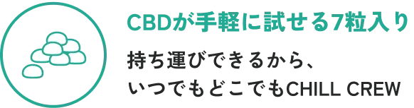 CHILL CREWはCBDがはじめてな方や、オイルタイプが苦手な方でも手軽にCHILL TIMEを毎日取り入れられるようグミタイプをご提案いたします。