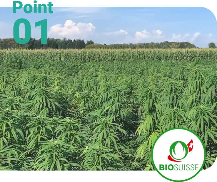 CHILL CREWのCBDはオーガニック認証「Bio Suisse」の厳しい基準をクリアした認定農場で栽培された麻から抽出したCBDです。